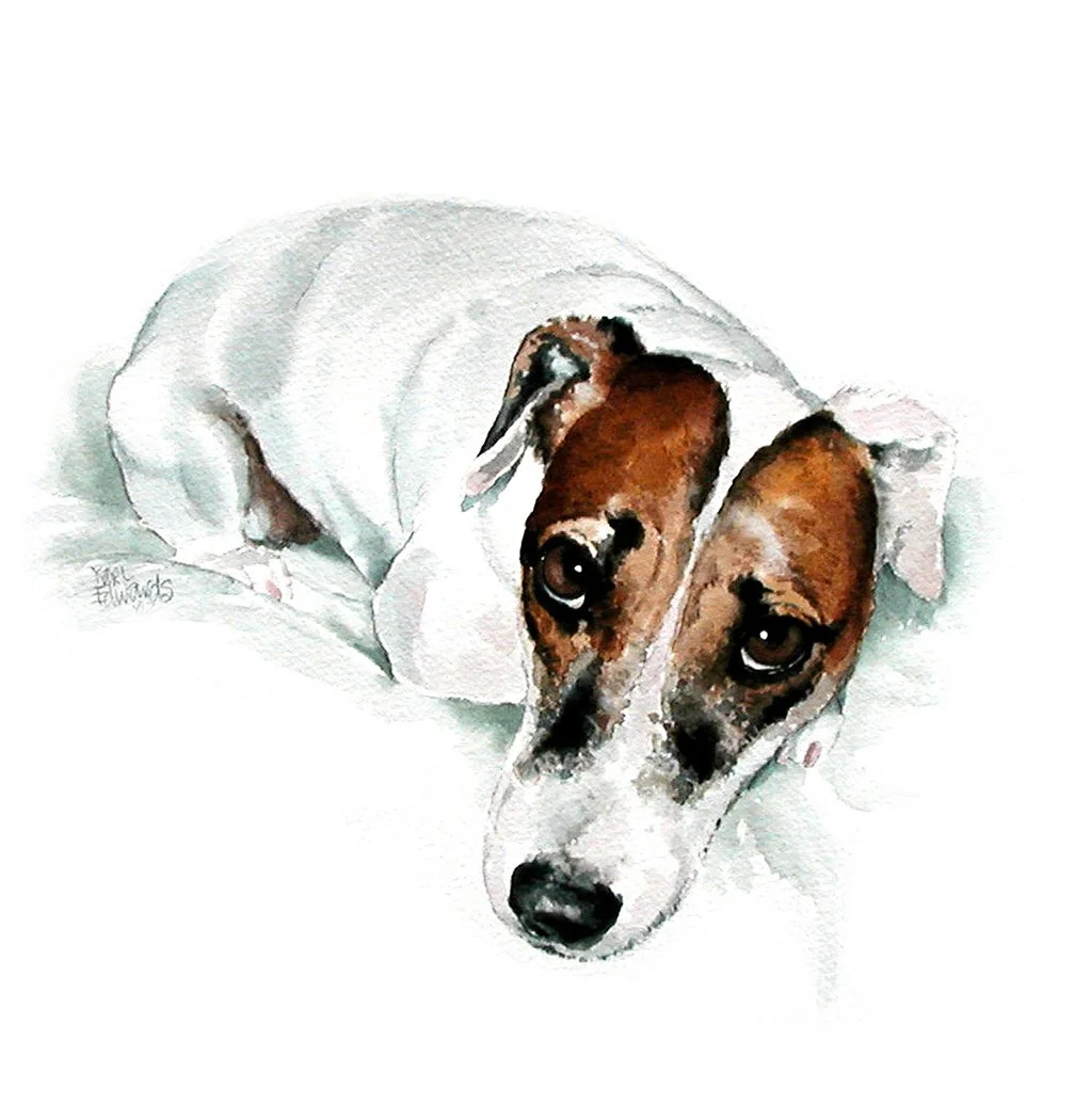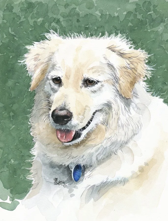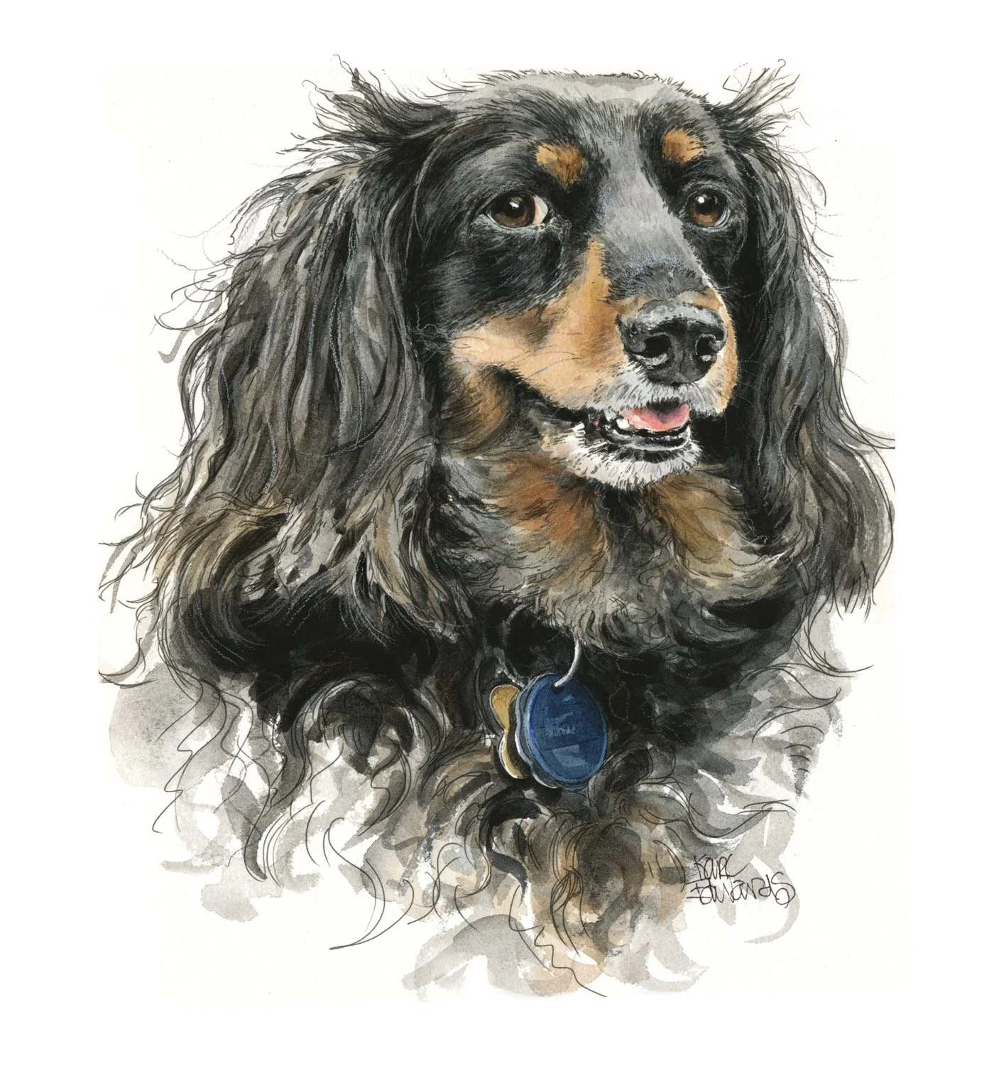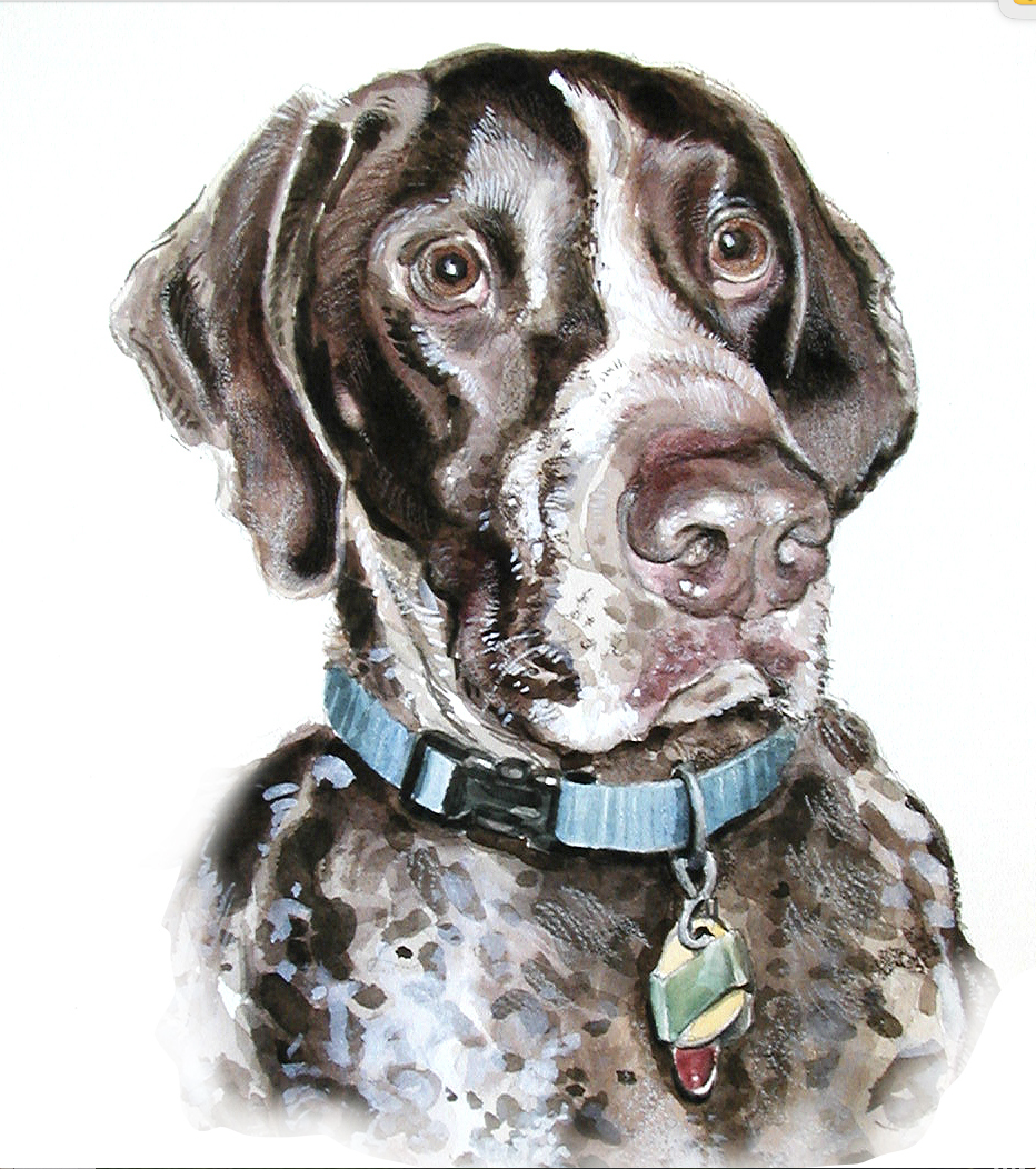 Although I was trained as a fine artist, I’ve made my living for almost 35 years as a freelance illustrator, listening, taking directions and instructions from art directors. I think like an illustrator, in that I try to solve the visual problem and at the same time satisfy the wants and needs of the client. In the case of dog portraits, the goal is to capture the unique essence of a particular dog.